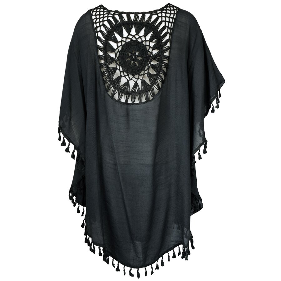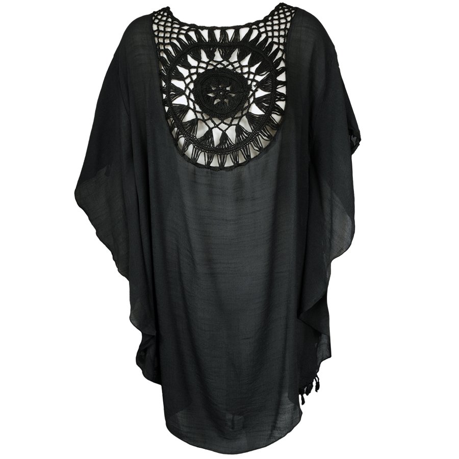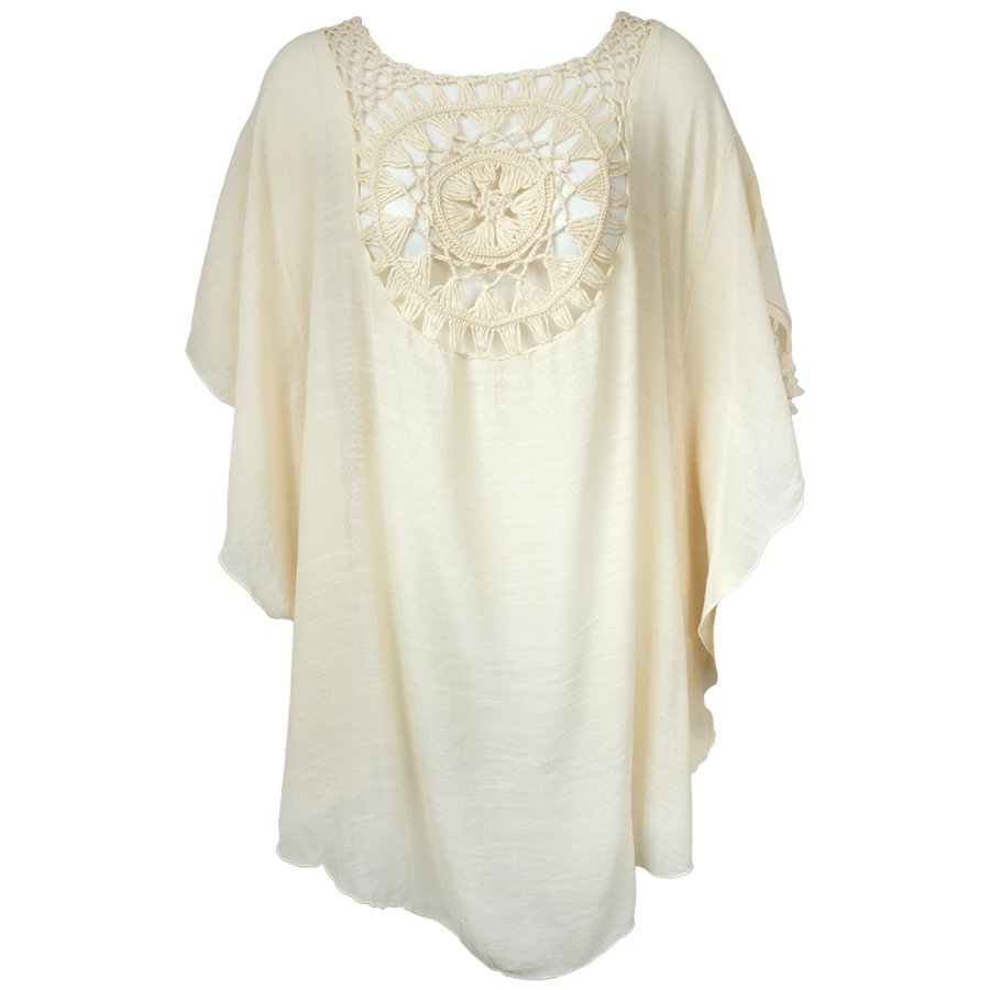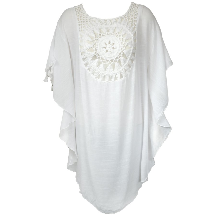 The Ari Kaftan is made of lightweight semi-sheer Rayon, with Crochet cut-out details.