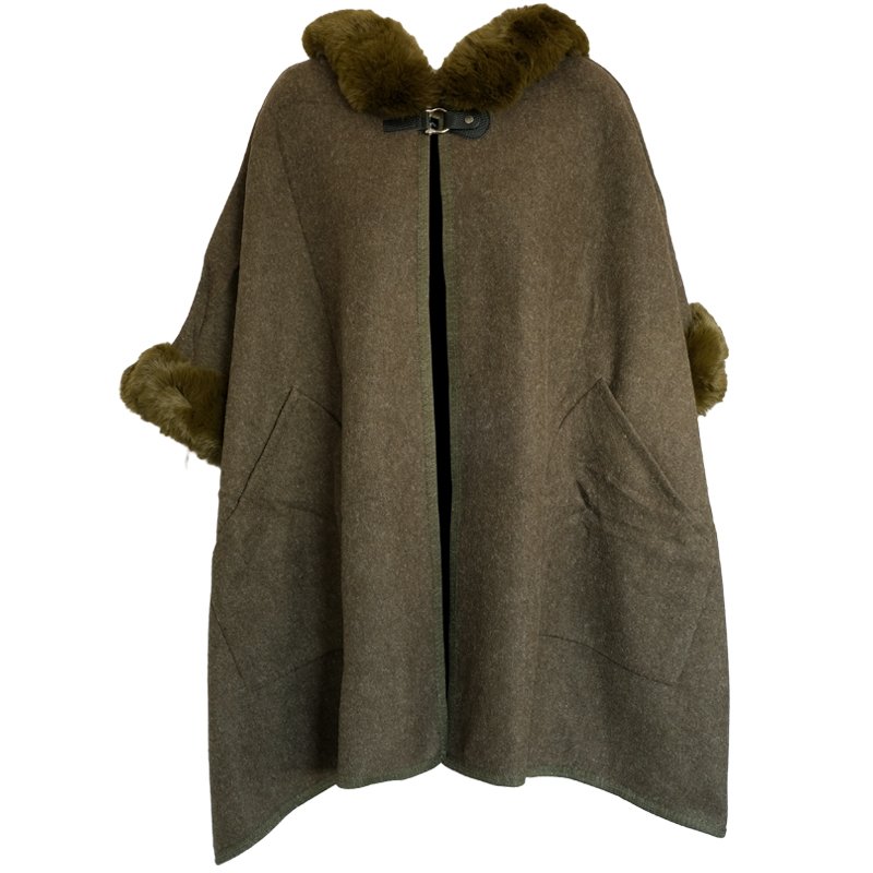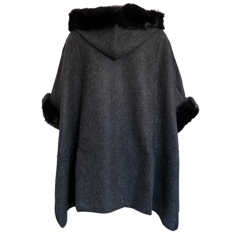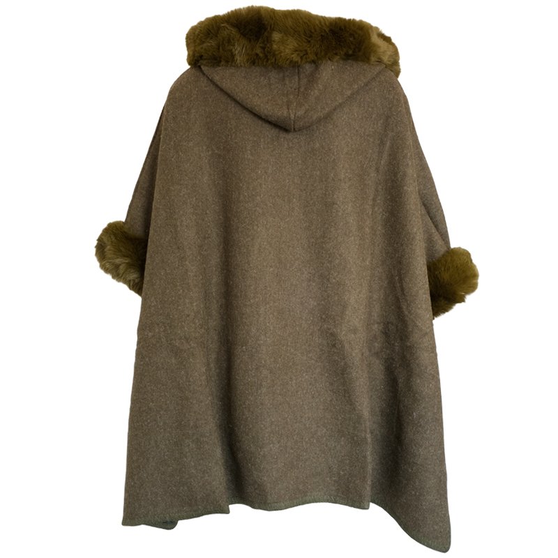 The Athena Cloak/Shawl is a practical over-garment with a whimsical touch.It's made of soft and warm Acrylic fabric, with fake fur trims around the hood and 3/4 length sleeves.