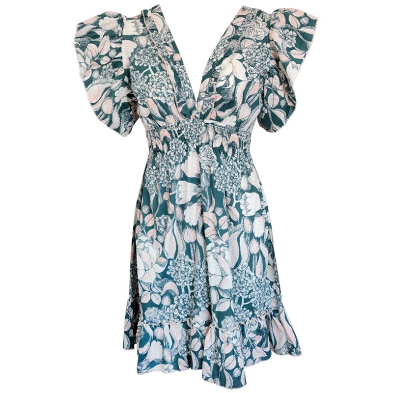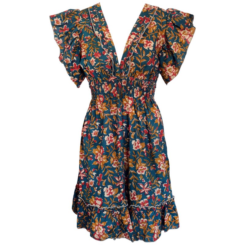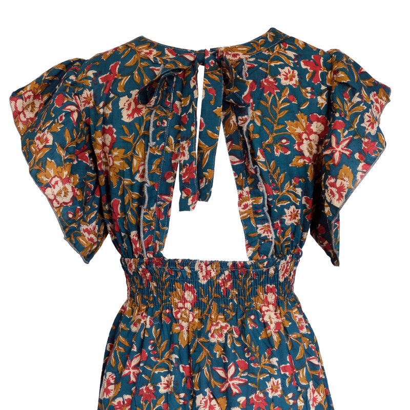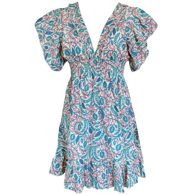 A delightful Cotton dress for summer days. The elasticated waist makes this dress very comfortable, and the frilly sleeves and neckline add a romantic and feminine touch.This One Size garments accomodates sizes 8-12.