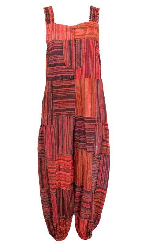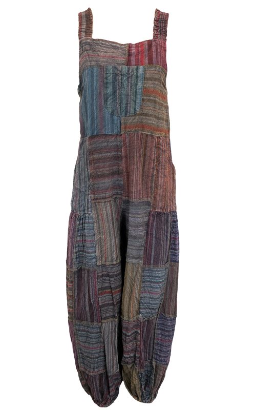A fun cotton jumpsuit in a patchwork design.