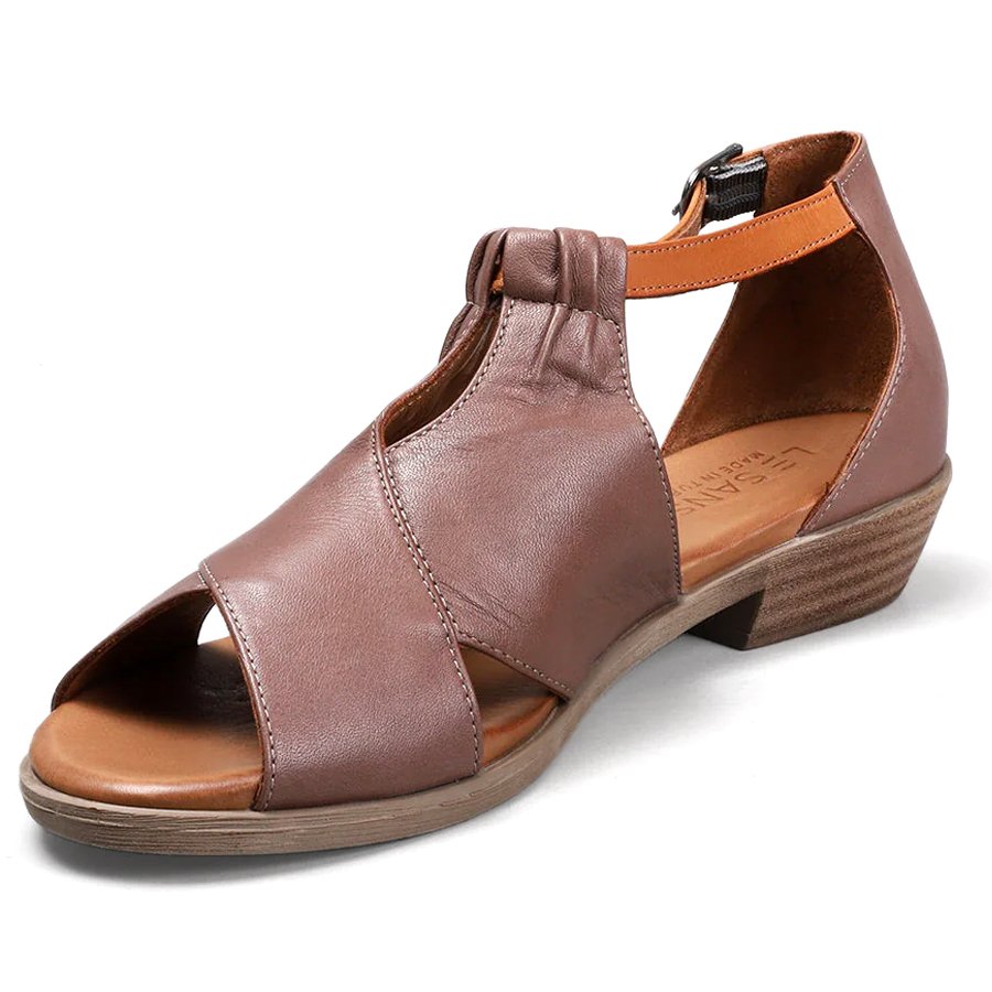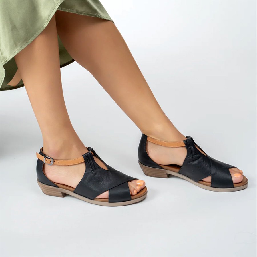 Crafted from soft leather, these sandals feature a chic design with cross-over straps, a peep toe, and stylish side cut-outs.