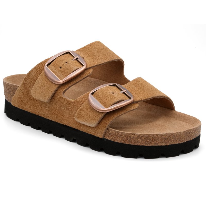 Meet Neckermann's two-strap slides, crafted with plush suede uppers and bold, chunky soles.