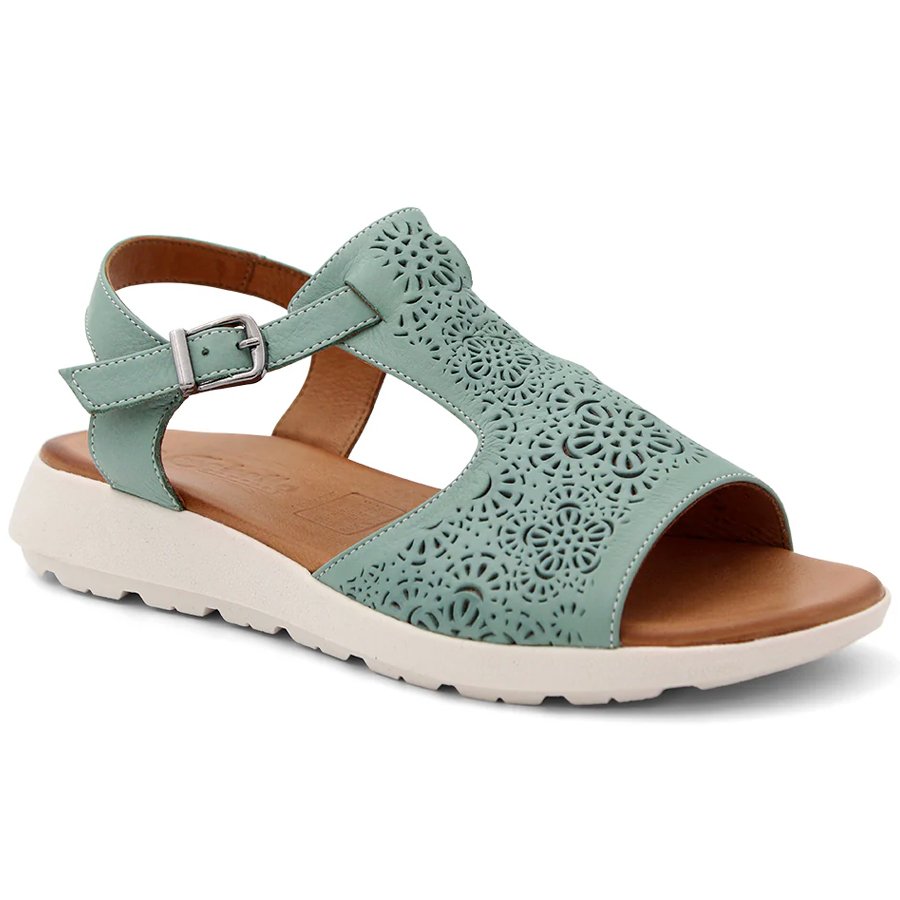 Designed with a wide leather upper, adorned with delicate laser-cut detailing, an adjustable strap for the perfect fit, and a luxuriously soft footbed for ultimate comfort.