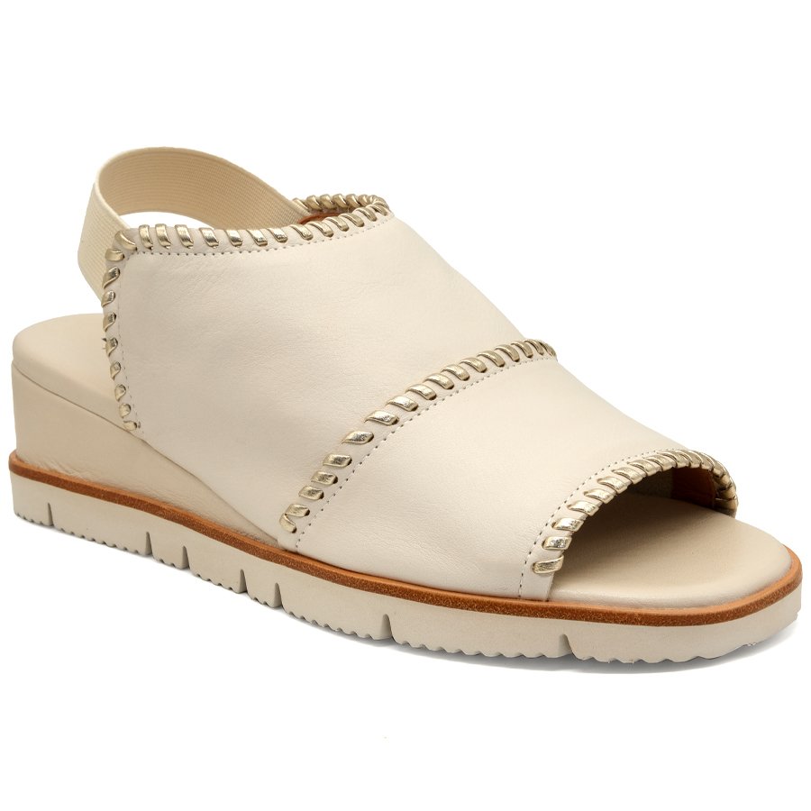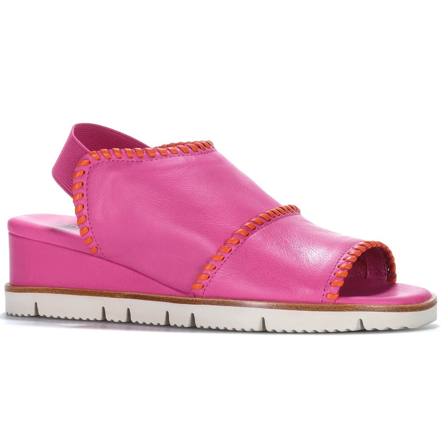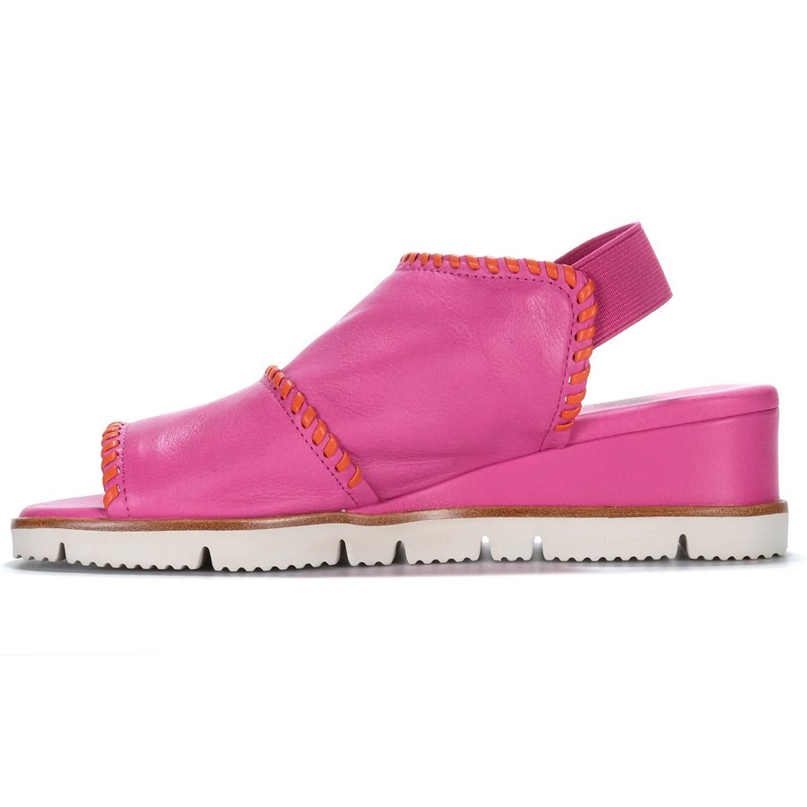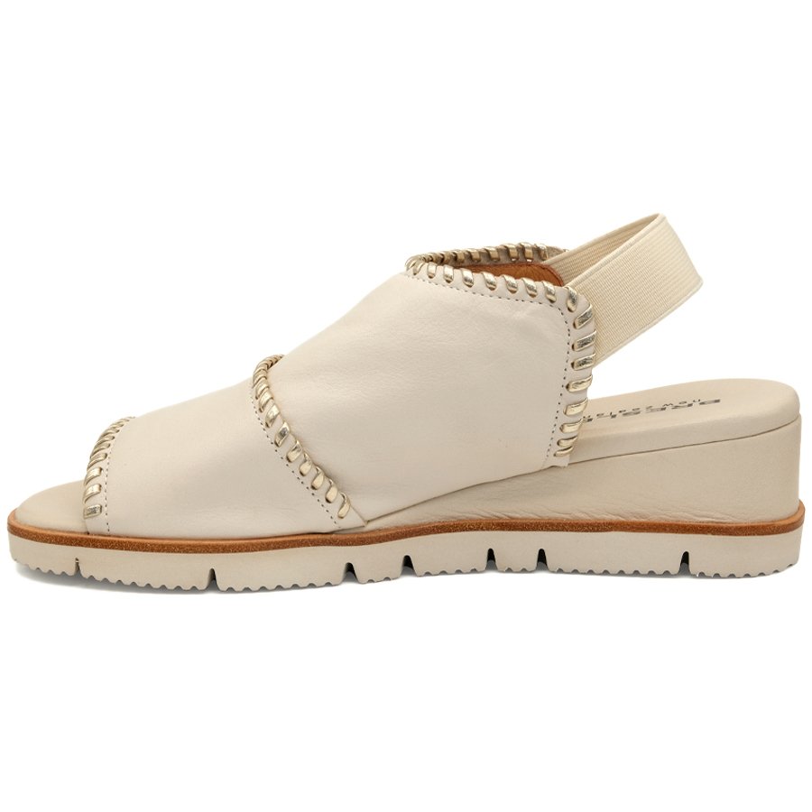 It features a cushioned wedge sole, offering exceptional all-day comfort, while the soft, luxurious leather upper is accented with a tasteful contrast trim for added elegance.