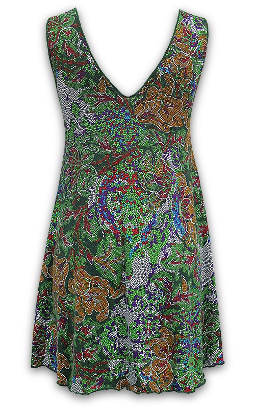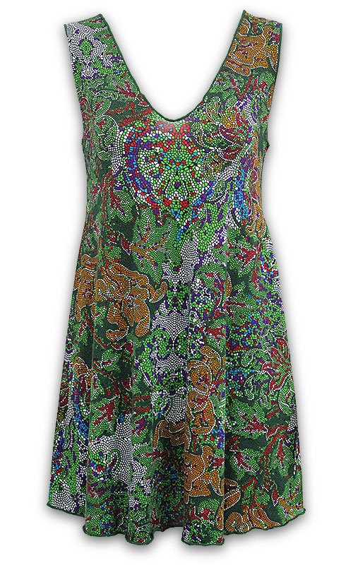 Fun and playful summer dress in a flattering style. Wears well on its own or layered over leggings.