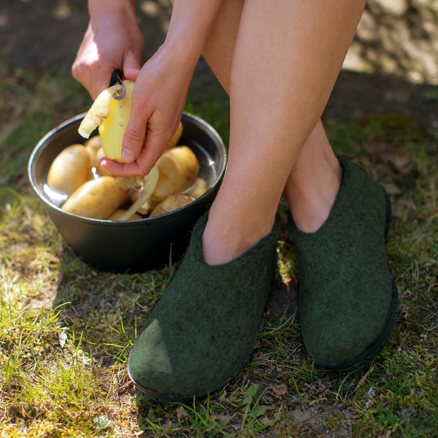 Felt shoe of 100% pure natural wool with a sole of black rubber.