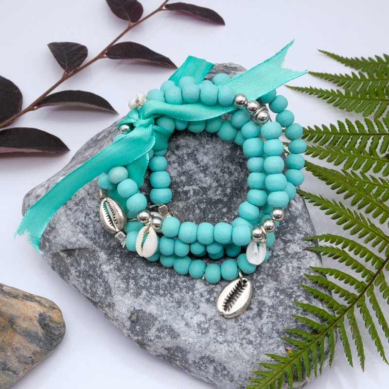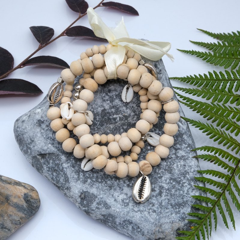 Wood and Shell Multi Bracelet - Jewellery-Bracelets : Mariposa Clothing NZ - Seriously Funky Clothing & Footwear for Men, Women & Children - Mariposa